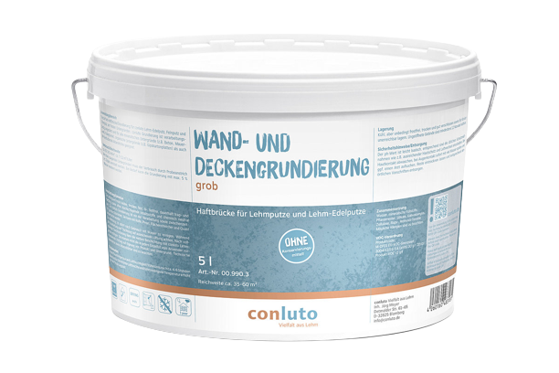 Speziell als Haftbrücke/Grundierung für conluto Lehm-Edelputz, Feinputz und Oberputz auf festen Untergründen. conluto Grundierung ist verarbeitungsfertig angerührt und für alle mineralischen Untergründe (z.B. Beton, Mauerwerk, Kalkgründe), organische Untergründe (z.B. Gipskartonplatten) als auch für festhaftende Altanstriche geeignet.