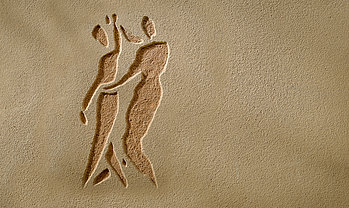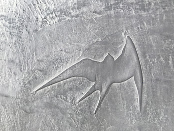 Die 1. Lage wird in einem Farbton nach Wahl aufgebracht. Die 2. Lage wird in einer anderen Farbe gemäß der Arbeitsanleitung für eine geschwämmte Oberfläche aufgetragen und bearbeitet. Nach vollständiger Trocknung und dem Nachreiben können Muster oder Schablonen auf die Oberfläche vorgezeichnet und anschließend mit geeignetem Werkzeug ausgekratzt werden. Die Fläche wird dazu mit Wasser eingesprüht. Die Sgraffito-Technik erzeugt reliefartige Strukturen und kontrastreiche Farbwirkungen. Der andersfarbige Unterputz wird als Linie oder Fläche sichtbar. Tipp: Gut abkleben und regelmäßig den Staub entfernen!